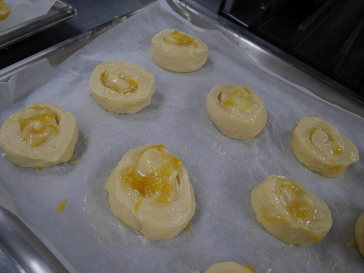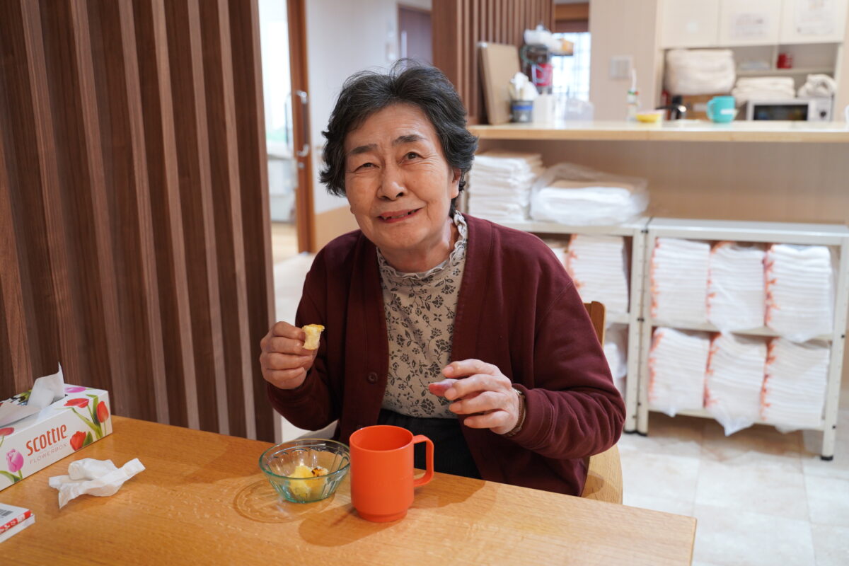 出来上がったパンをお出しすると、「おいしいですね」と嬉しそうに召し上がるお姿が見られ、笑顔あふれる時間となりました。焼きたてならではのやわらかさと、みかんのやさしい甘みが感じられる味わいに、心もほぐれるご様子でした。