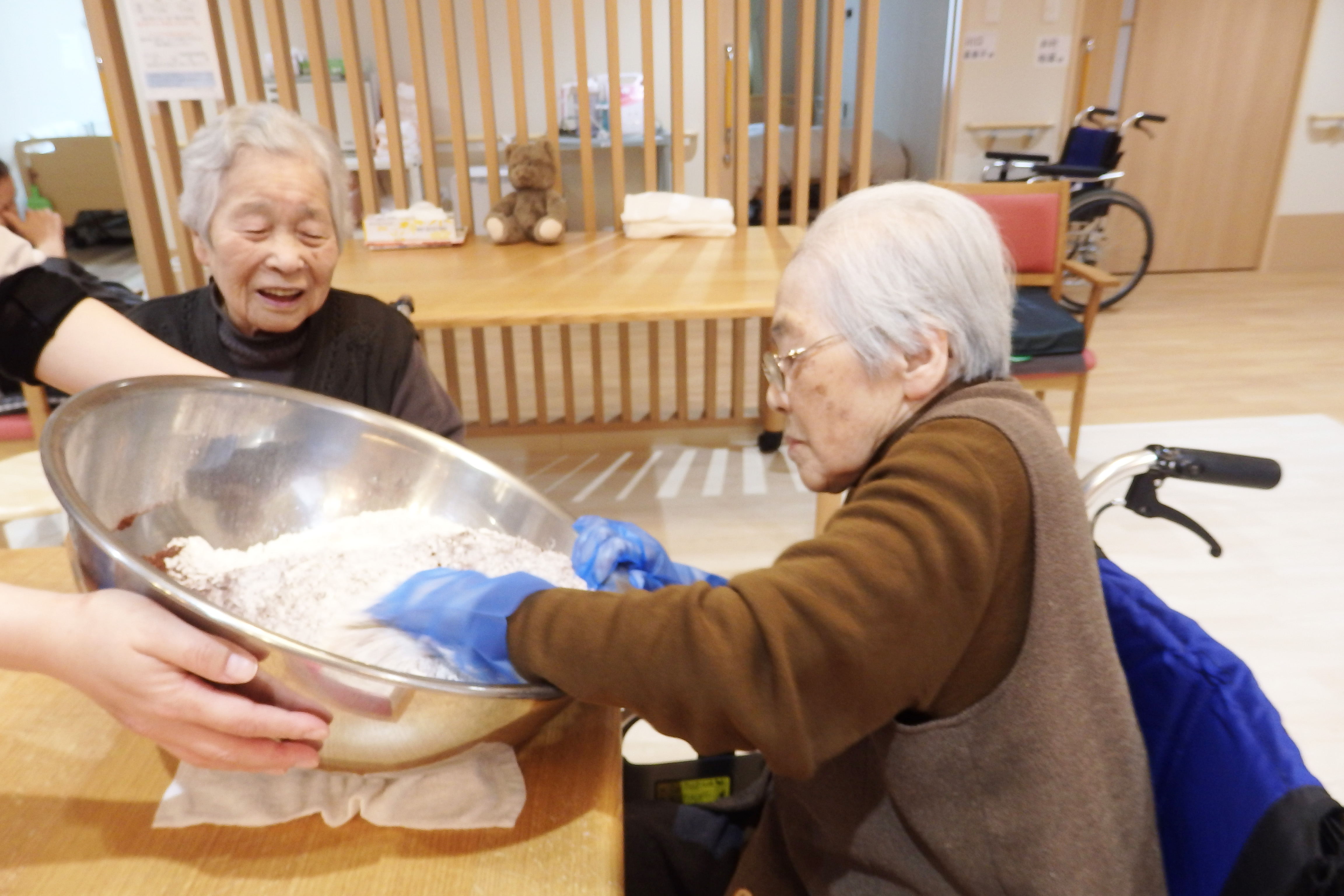 2025年11月14日 | ふたみ苑チョコパンパン作り令和7年11月11日ふたみ苑にて、今月のパンとして「チョコパン」を作りました。生地にココアを混ぜ、チョコレートを中に入れ、パンの上にも乗せて焼きました。中に入れたチョコレートは溶けて柔らかく、上に乗せたチョコレートはザクザクした食感で、今月も大好評でした。来月は、メロンパンを作る予定です。特別養護老人ホーム ふたみ苑住所:三重県伊勢市二見町三津1201-68施設詳細はこちら