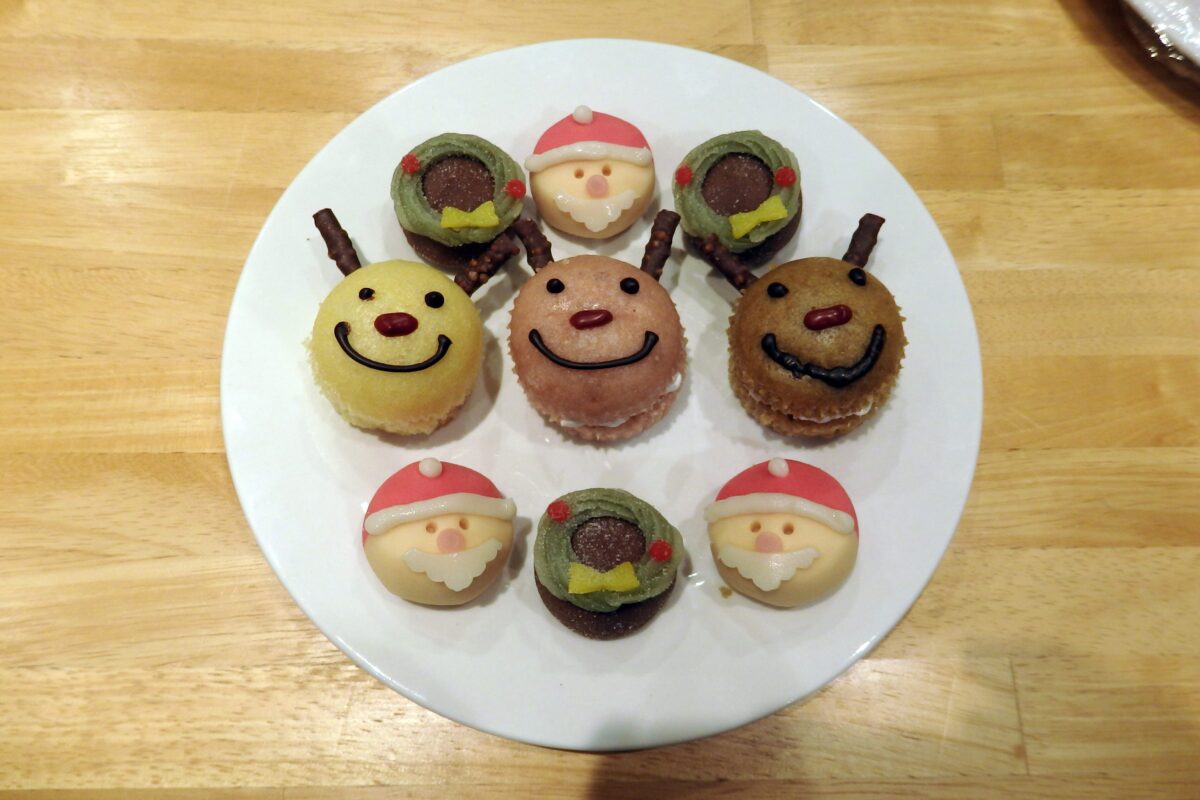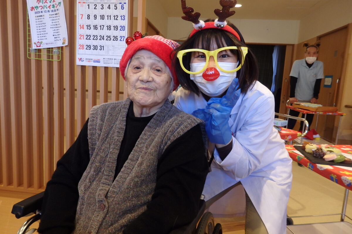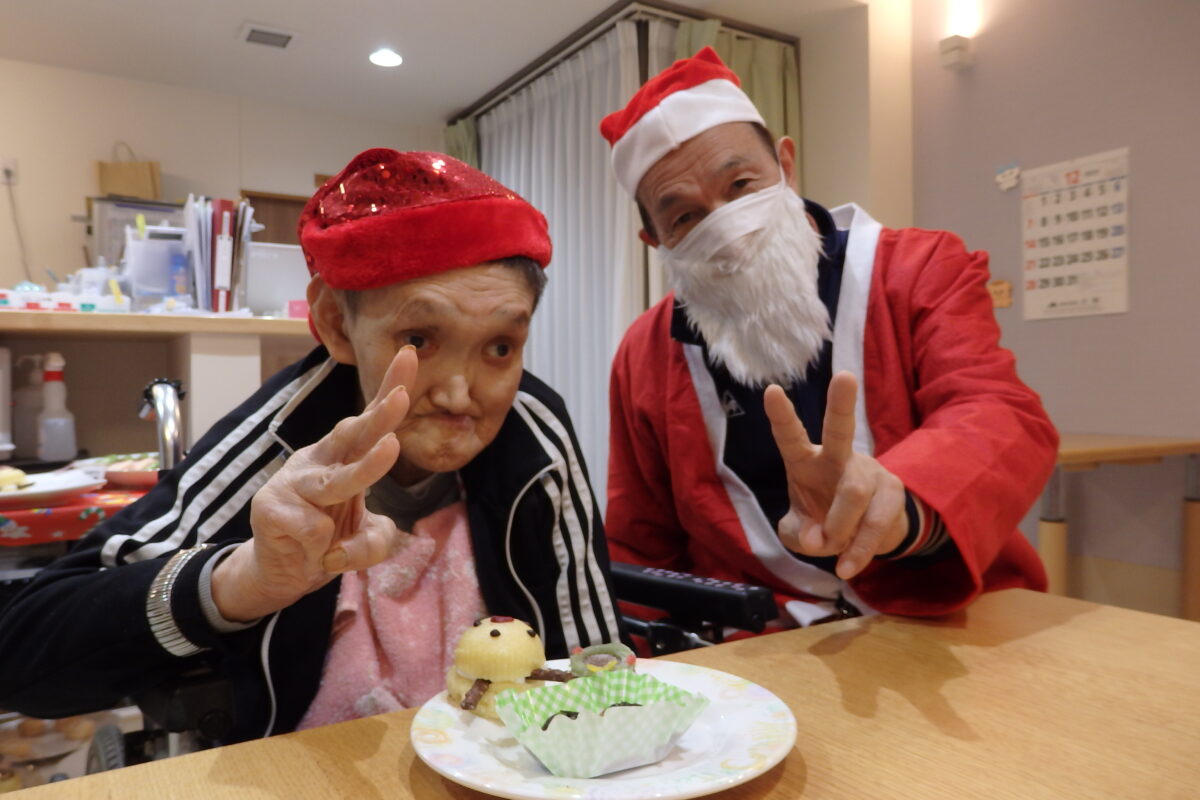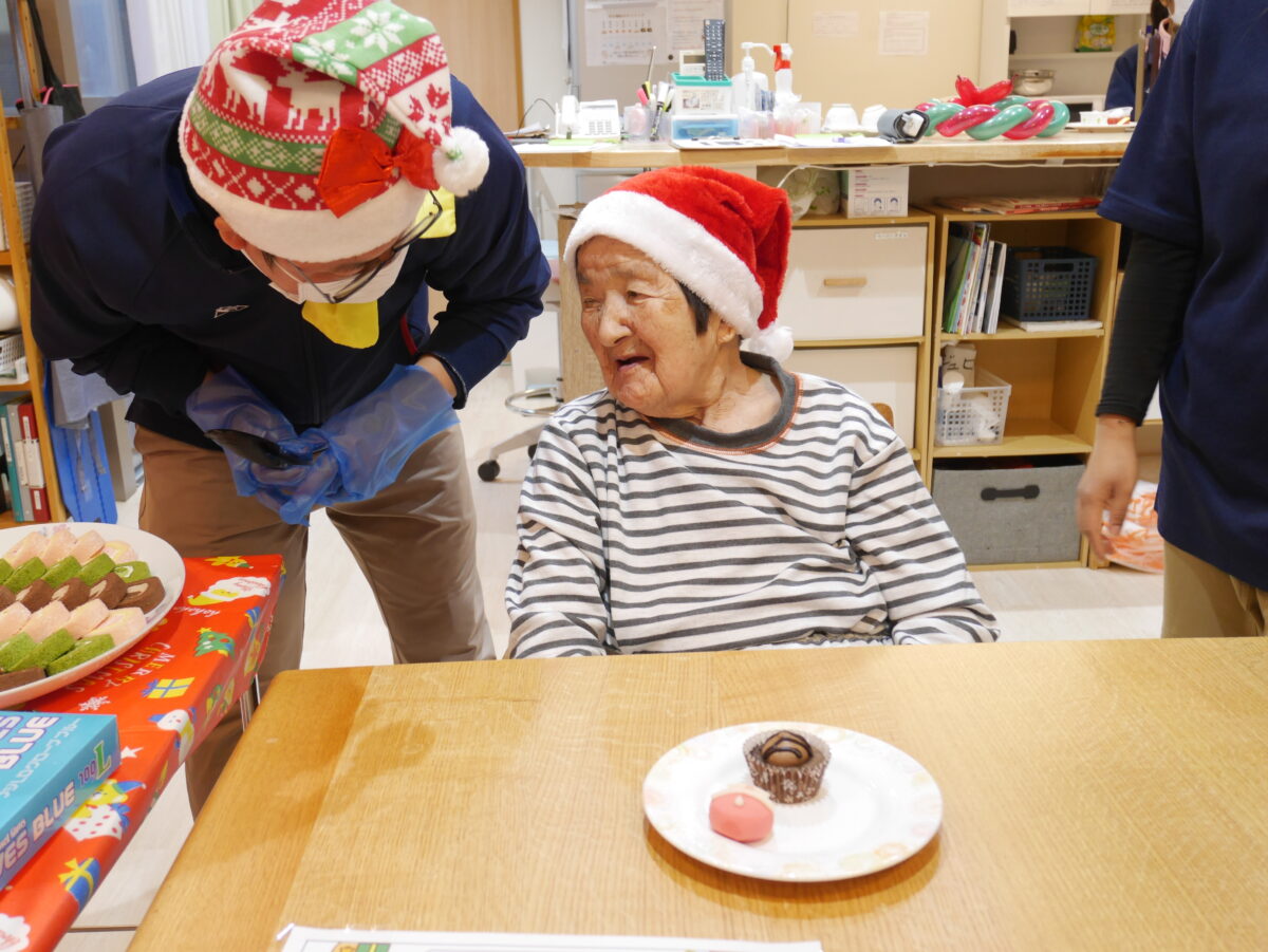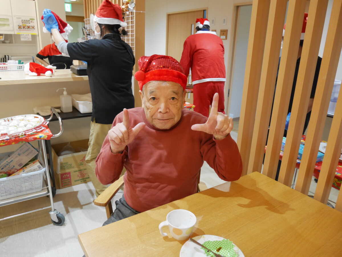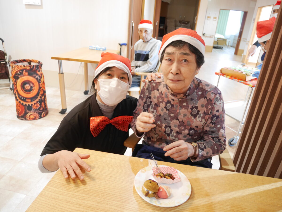 トナカイ蒸しパンやクリスマスまんじゅう、カットケーキ、たこ焼きなど、数種類のおやつを用意し、ご利用者の皆様にはお好きなおやつを自由に選んでいただきました。