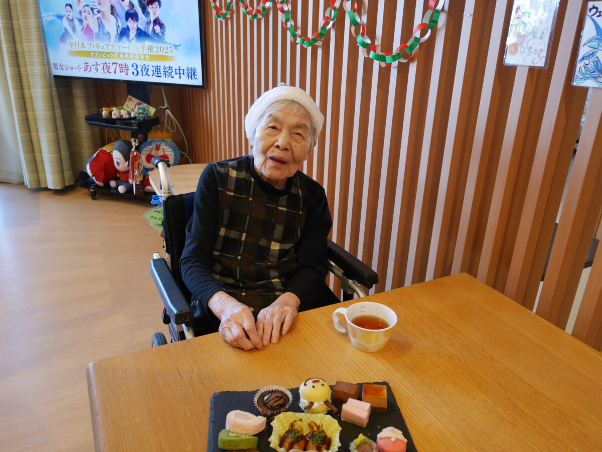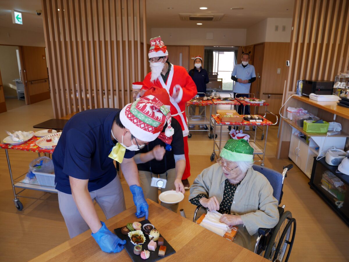 ふたみ苑ではクリスマス行事にてスタッフが飾りつけしたおやつカートを押して各ユニットを回り、ご利用者の皆様におやつバイキングを楽しんでいただきました。