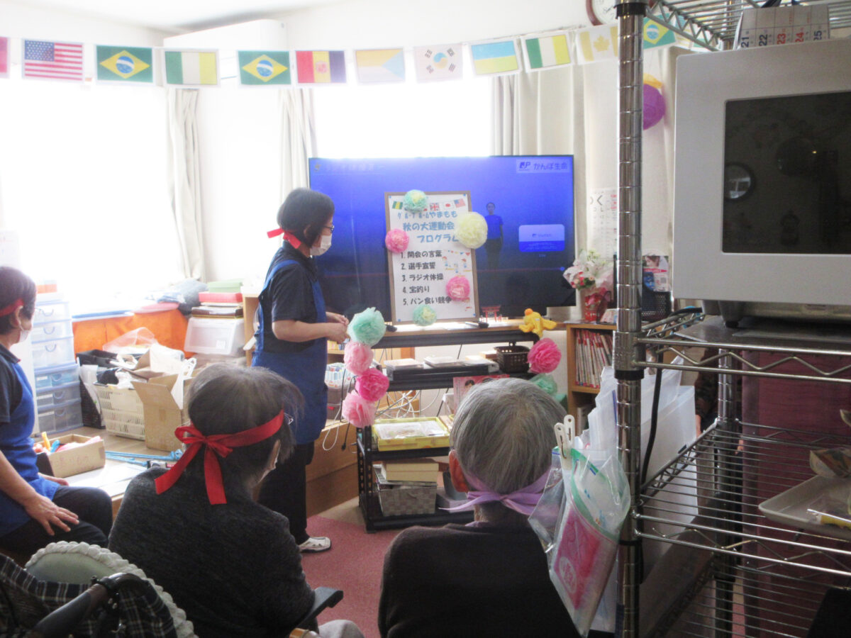 ラジオ体操、宝釣り、パン食い競争など工夫を凝らした競技が行われました。