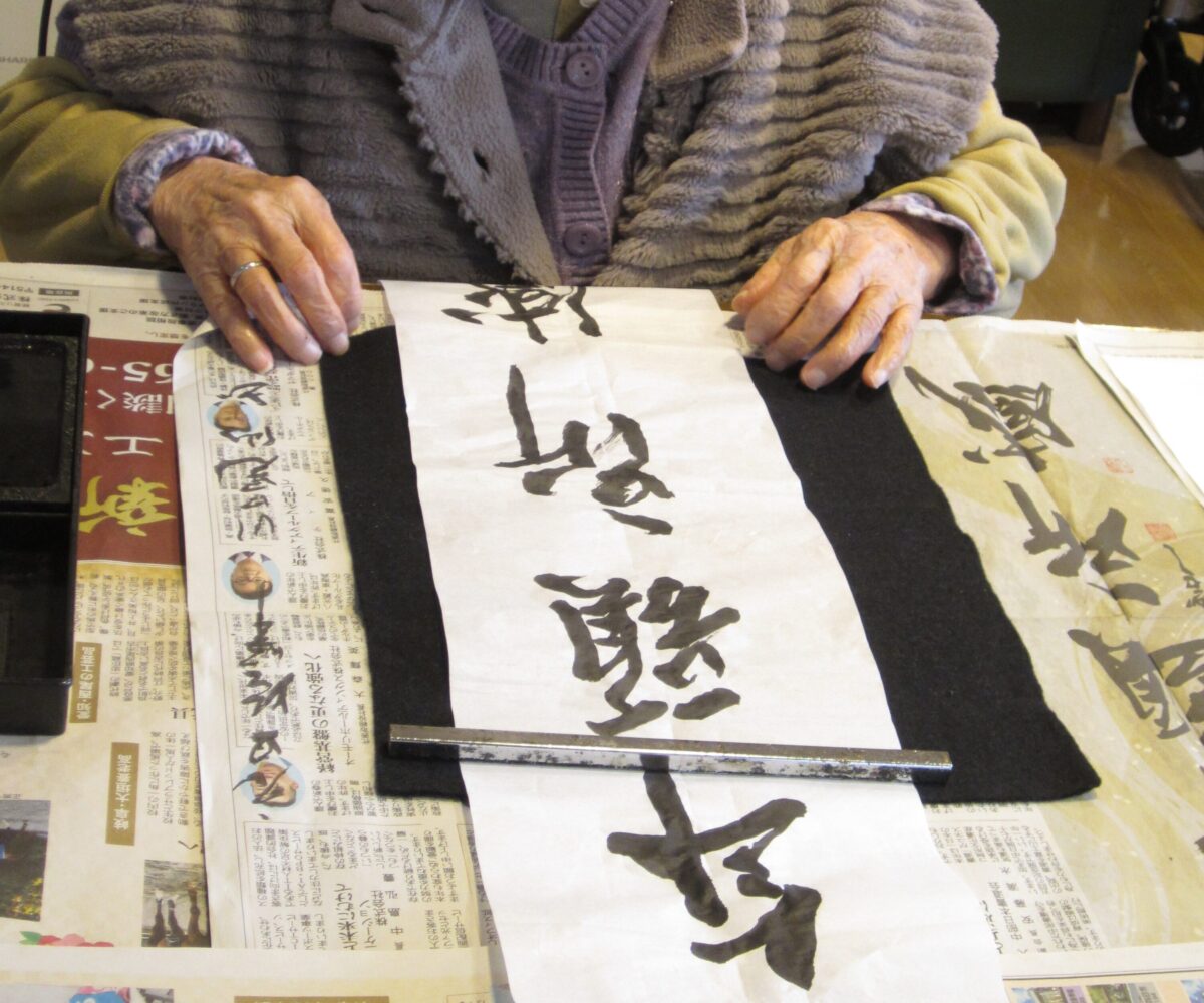 書き初めでは、皆様が真剣な表情で筆を持ち、丁寧に一文字ずつ書き上げられ、それぞれに味わいのある作品が完成しました。