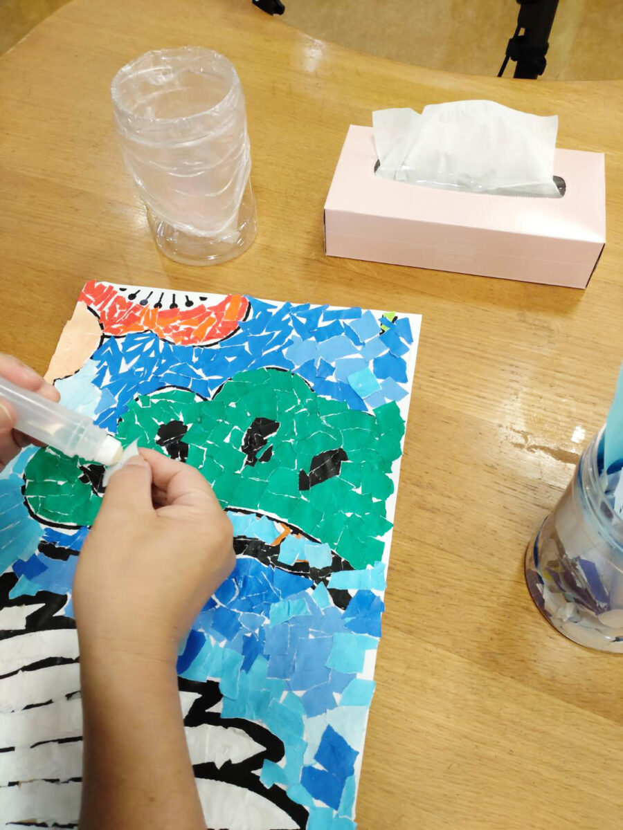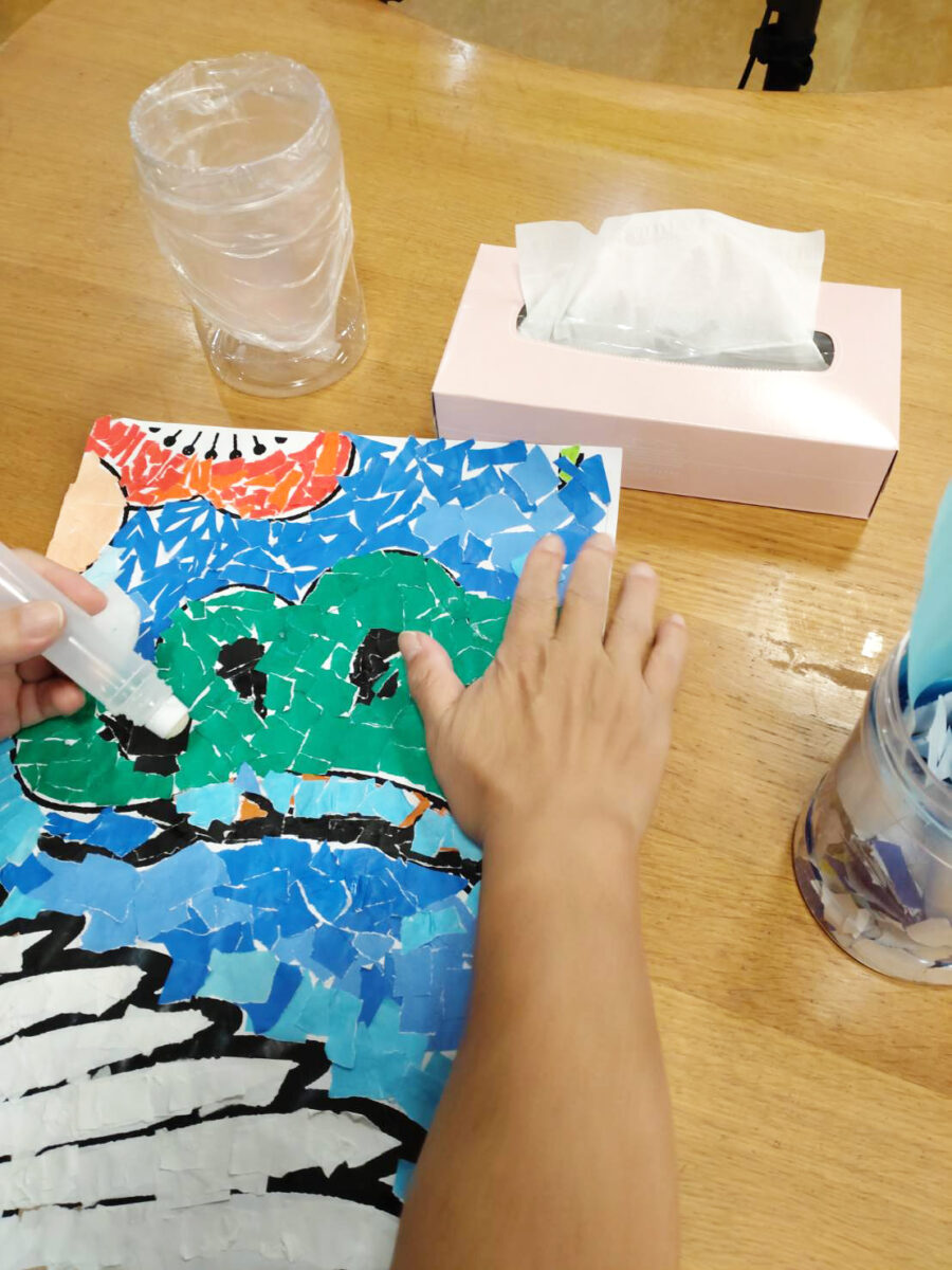 2025年10月14日 | デイサービスセンター豊和作品作り貼り絵先日配信させていただいたように、デイサービスセンター豊和では利用者様と一緒に少しづつ貼り絵を作成しています。大きな作品なので、すぐにはできませんが、利用者様も頑張っていただけており、楽しみにもされています。完成品は、デイサービスセンター豊和へ展示予定です。デイサービスセンター豊和住所:三重県志摩市阿児町鵜方2555-1施設詳細はこちら