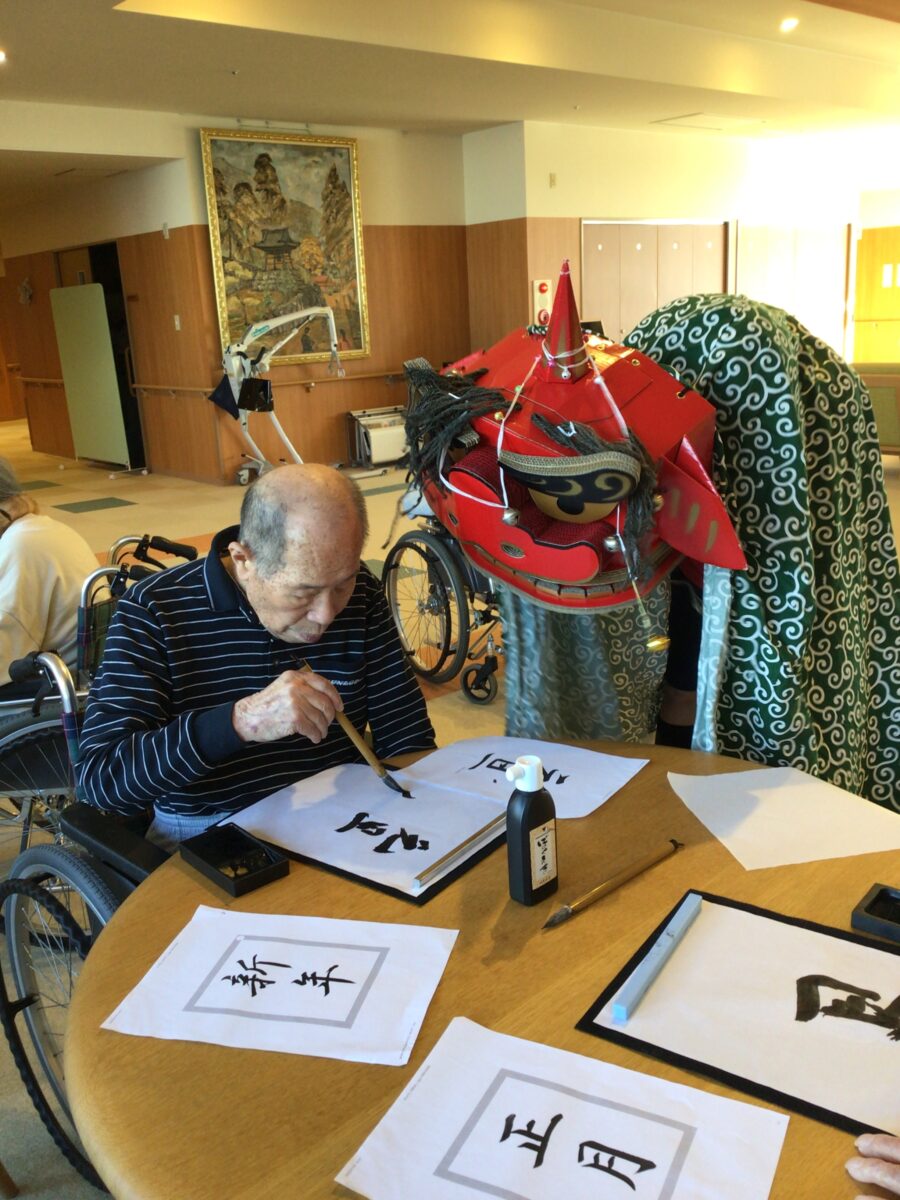 1月は、書初めや獅子舞、行事食の提供を通して、ご利用者の皆さまに楽しい時間を過ごしていただきました。