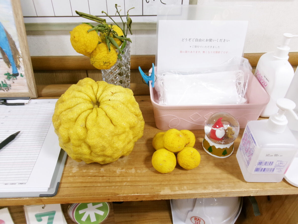 志摩豊和苑では季節を感じて頂くために、デイルームに柚子を飾りました。