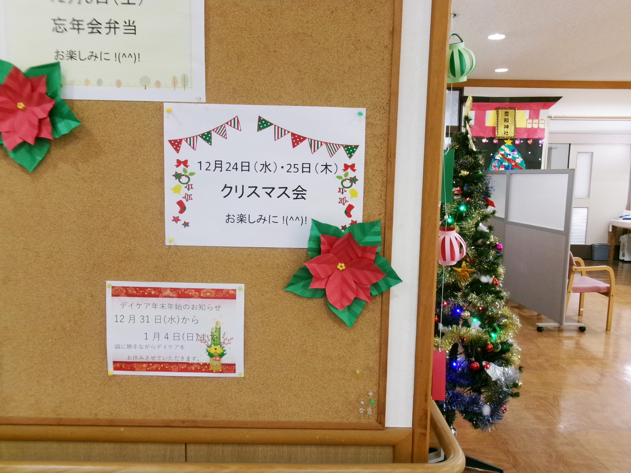 レクリエーションの予定も貼りだし、24日、25日にはクリスマス会を予定しています。