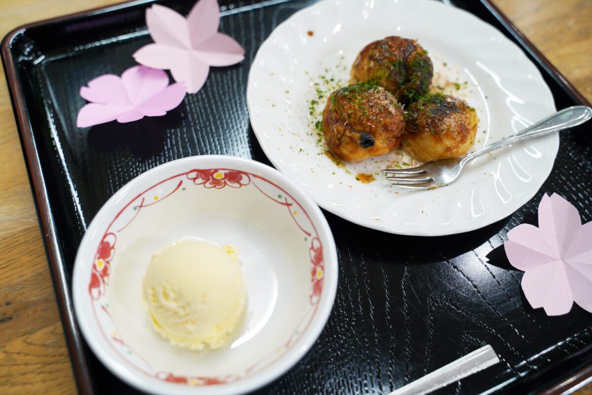 焼きたてのたこ焼きと冷たいアイスを楽しみながら、和やかなおやつの時間を過ごしていただくことができました。
