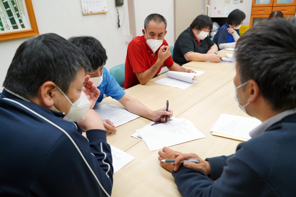 職員が集まり、新年会の内容や進行について話し合いました。